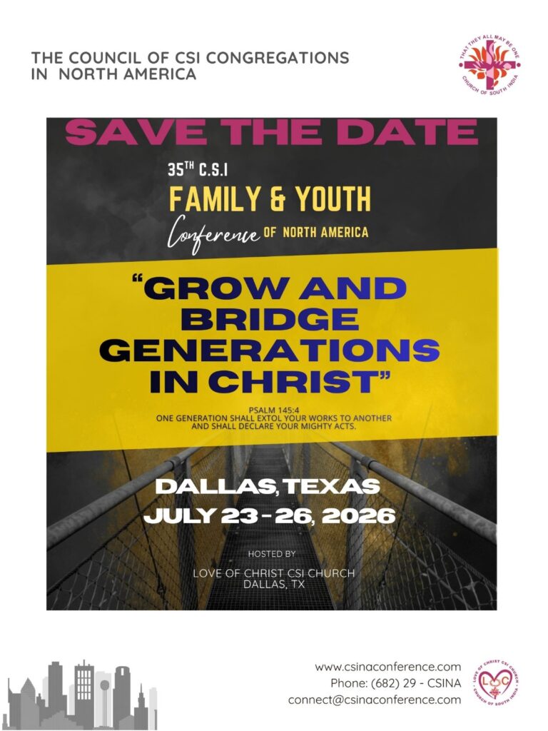 The 35th CSI Family and Youth Conference of North America will happen from Thursday, July 23, 2026, to Sunday, July 26, 2026 at Dallas, Texas.